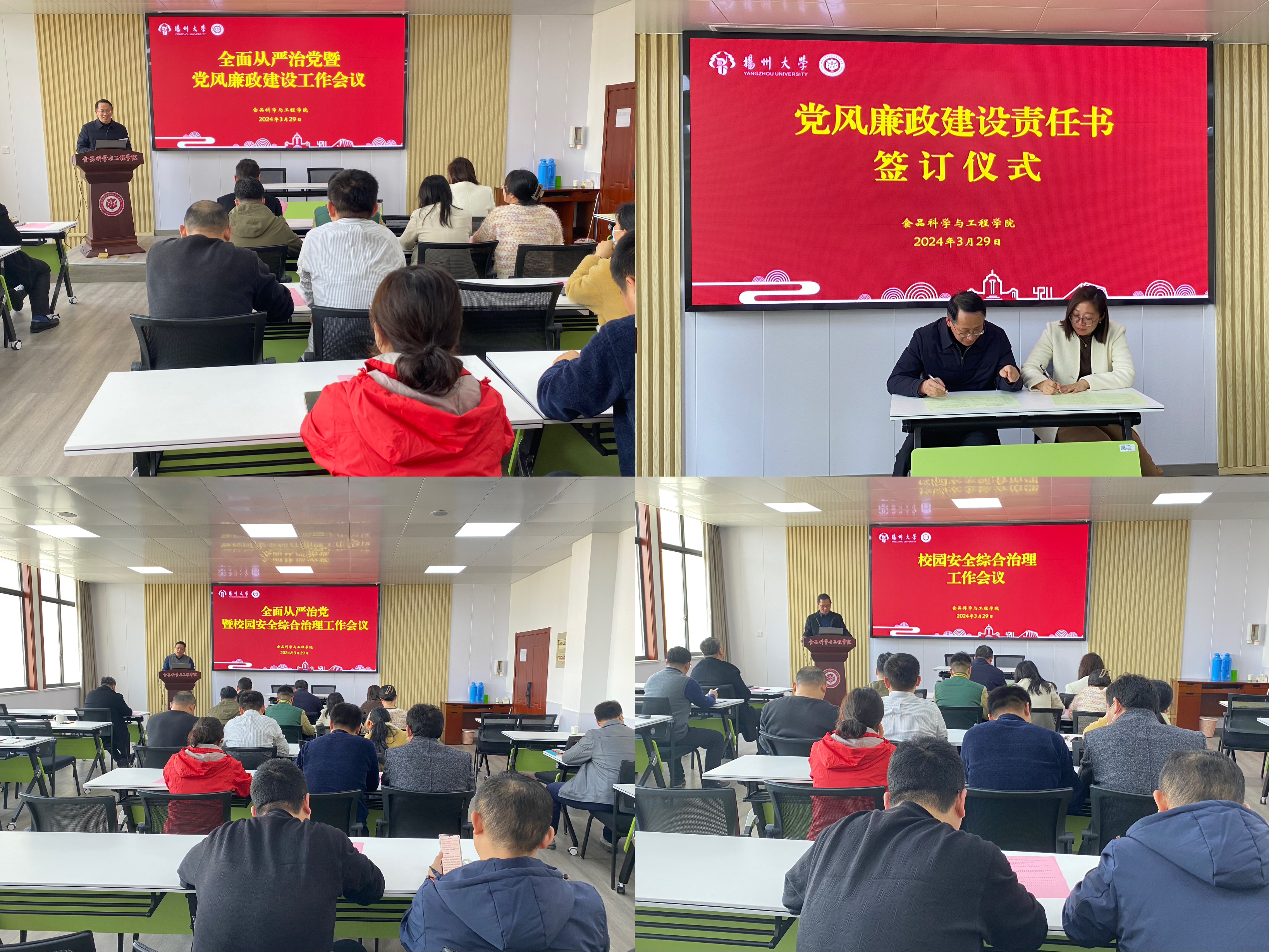 会上,院党委副书记、学院纪律检查委员杨晶传达了二十届中纪委三次全会和学校2024年全面从严治党工作会议精神。院党委委员孔凡勤同志传达了学校2024年校园安全综合治理工作会议精神。全体院领导分别与责任对象代表签订了党风廉政建设责任书、落实意识形态责任书、校园安全综合治理工作责任书和消防安全责任书。