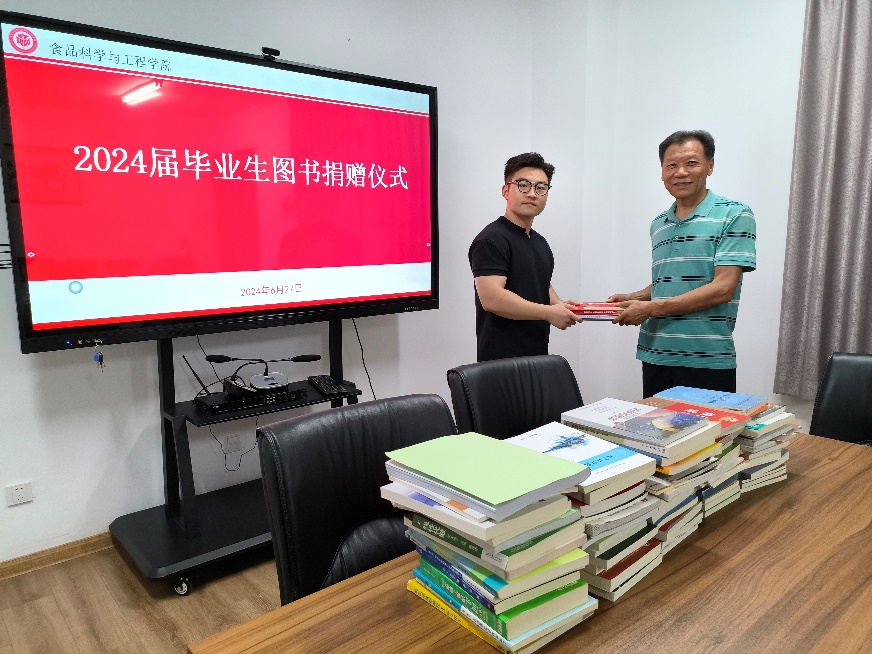 6月27日上午,在校关工委为爱心超市捐书的倡导下,食品学院关工委举办2024届毕业生捐书仪式。校关工委联络站刘军主任、学生代表参加了仪式。