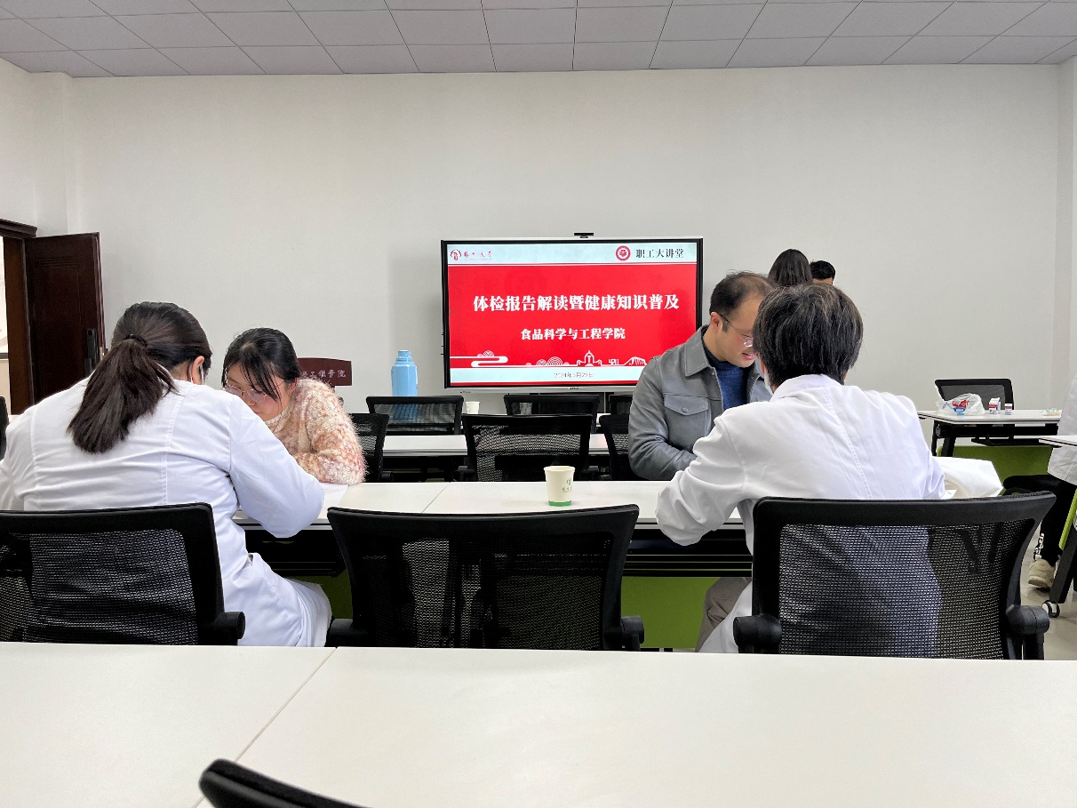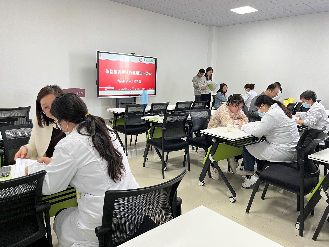 3月29日,食品科学与工程学院开展了职工大讲堂活动——体检报告解读暨健康知识普及,邀请了扬子津卫生所陈兰所长及四位医护人员参加了本次活动。活动过程中,老师们积极参与,复测血糖血压,并同医护人员交流了体检报告中的问题。医护人员点对点解读体检报告,并叮嘱生活中定期体检及饮食运动等注意事项。