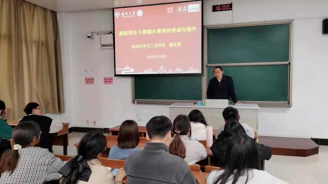 3月8日下午4点,食品科学与工程学院于文津楼N102教室举办了关于高校学生干部媒介素养的养成和提高的讲座,主讲人为学院党委书记戴世勇老师。讲座上氛围良好,同学们从中学到了不少干货。