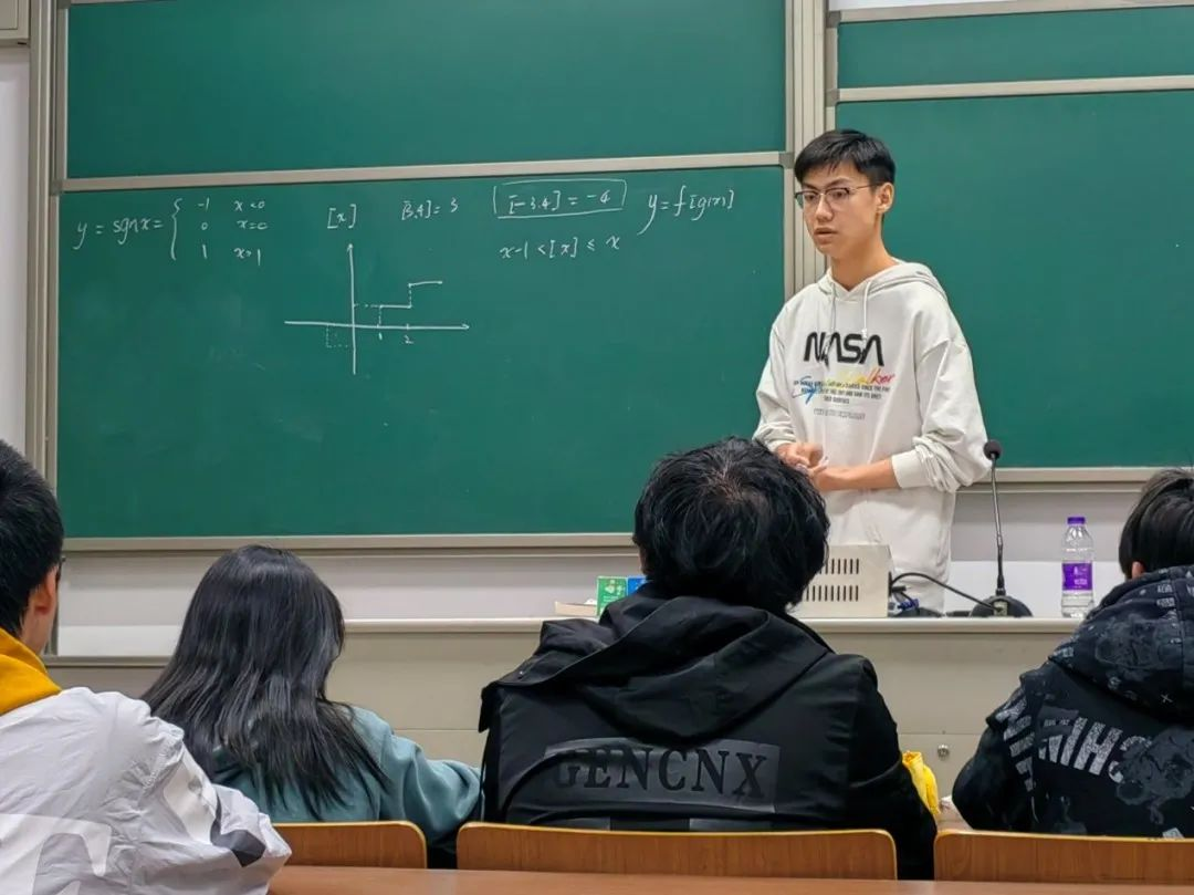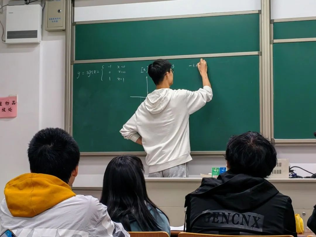 张健同学是学院出名的“高数大神”,多次参加全国大学生数学竞赛并获得金奖,他耐心的为大一的同学们梳理高数重点,解答疑惑。伴随着黑板上密密麻麻的公式和难点,晚自习已经结束,同学们意犹未尽,纷纷表示收获很大,对张健学长十分感谢。