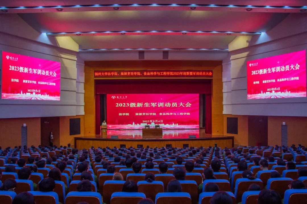9月4日上午十点半,我院联合法学院、旅游烹饪学院在文体馆,共同举办了2023级新生军训开营仪式。 我院党委副书记杨晶老师、年级辅导员,以及2023级本科新生参加活动。