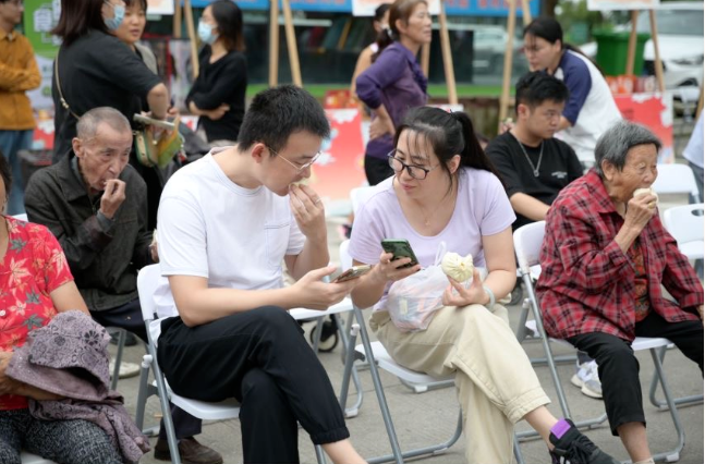 今天擂台的主题是“早茶”。“哇!好香呀!”随着一声赞叹,现场的观众朋友们不约而同地张望着,寻找香气的来源。不一会儿,工作人员就端着冒着热气和香气的蒸笼走来,活动现场充满着喜悦和期待的声音。工作人员为评委、观众们逐一盛上高邮阳春面、小肠牛肉面、小笼包等淮扬美食。
