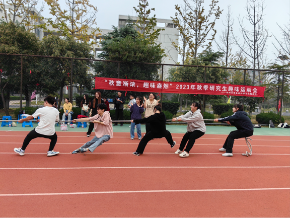 为营造和谐、健康的校园气氛,丰富我院研究生的课余生活,充分展示研究生积极向上的精神风貌,激发研究生参与体育活动的激情,增强集体意识和团结意识,以更好的状态去对待学习生活,2023年11月4日在扬州大学扬子津东校区操场,学院举办研究生学术文化节系列活动之“秋意渐浓,趣味盎然”研究生秋季趣味运动会。本次运动会项目集趣味性、娱乐性、协作性和竞争性于一身,分为拔河、三人四足、筷子夹球、搬砖过河、勇往直前5个项目,同学们积极踊跃参与。