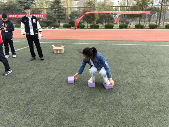 在“三人四足”环节中,只见同学们协力抬起“毛毛虫”,以一摇一摆的奔跑姿势奔向终点,酣畅淋漓地奔跑着、欢笑着。