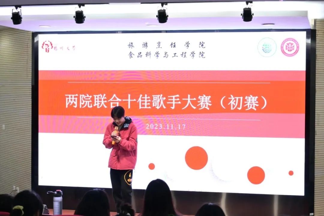 2023年11月17日19时,由我院及旅游烹饪学院共同举办的2023年研究生十佳歌手大赛于笃行楼N302举行。比赛秉持着公平、公正、公开的原则,由我院研会主席胡美霞及蔡俊等担任评委。