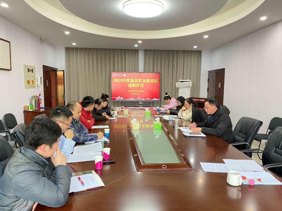 为深入贯彻落实习近平新时代中国特色社会主义思想和党的二十大精神,充分发挥党支部战斗堡垒作用,进一步提升和抓实抓细基层党建工作,1月5日下午,学院召开2023年度党支部书记述职评议会,全面考核各党支部书记履职情况,总结工作,查摆问题,明确下一步工作思路。会议由院党委副书记杨晶主持,院党委书记戴世勇、全体党支部书记出席会议。