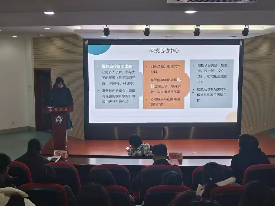 科协汇报人赵柏雷分享了在协会中参与项目开发的经历。在会议上他总结了团队合作和创新对个人的重要性,对协会充满敬意。他表示在这个过程中,部门成员技能得到了提升,对未来的职业道路有了更清晰的规划。