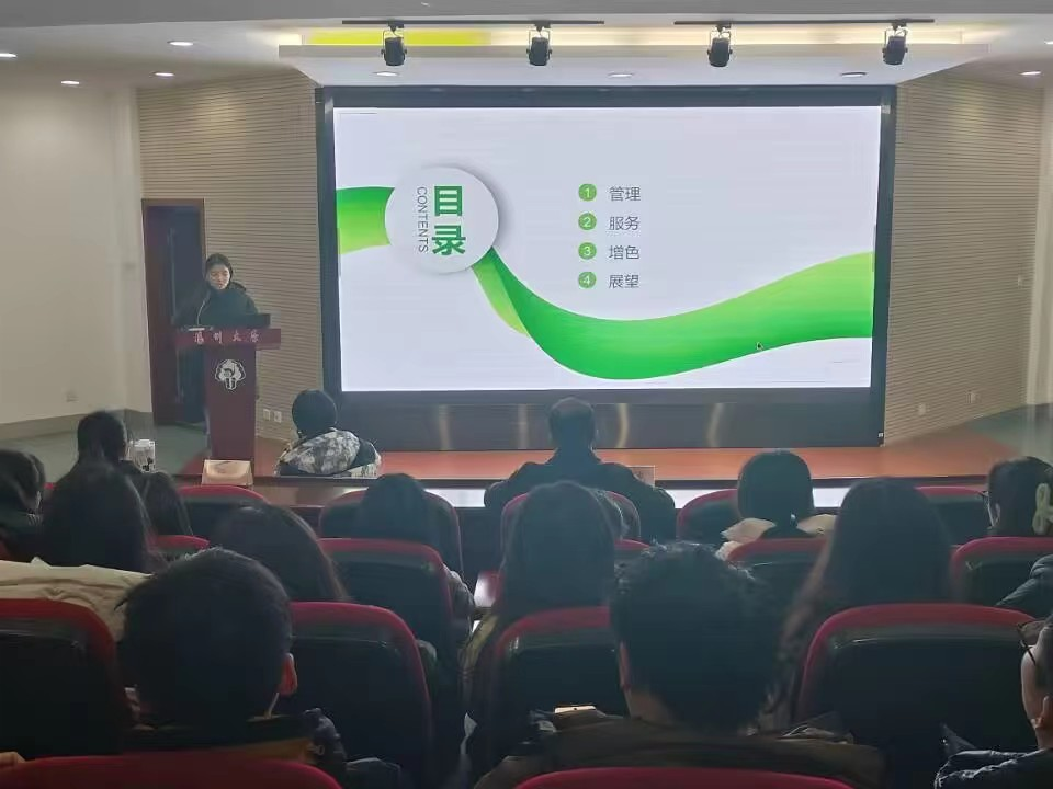 学生会执行主席唐婷婷分别从管理、服务、增色、展望四个角度来进行本次总结报告,介绍本年度的工作经验、成果,深刻分析了目前的不足,最后叙述了对学生会未来的规划。