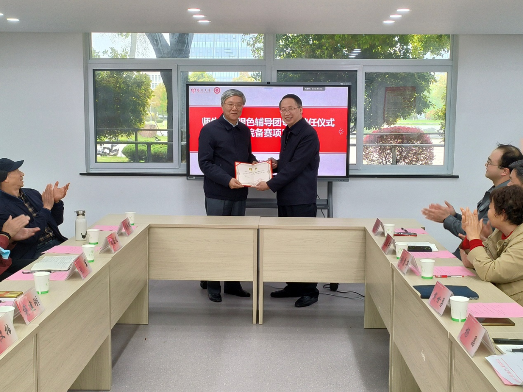为了进一步做好我院关心下一代工作,学院进行了师生竞赛银色辅导团专家聘任仪式,聘任仇月娥、黄阿根和蒋建刚为师生竞赛银色辅导团专家。由戴世勇书记颁发聘任证书。