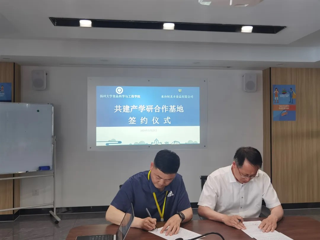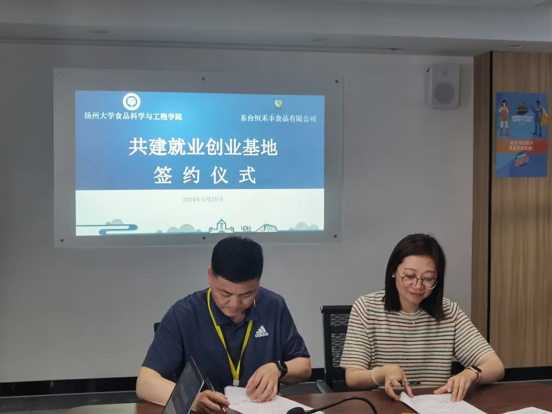 5月23日,院党委书记戴世勇,院党委副书记杨晶,副院长黄玉军,以及杨明老师,鲁茂林老师,钱建亚老师,陈玉龙老师应邀带队前往东台恒禾丰食品有限公司,进行访企拓岗,并达成产学研合作。