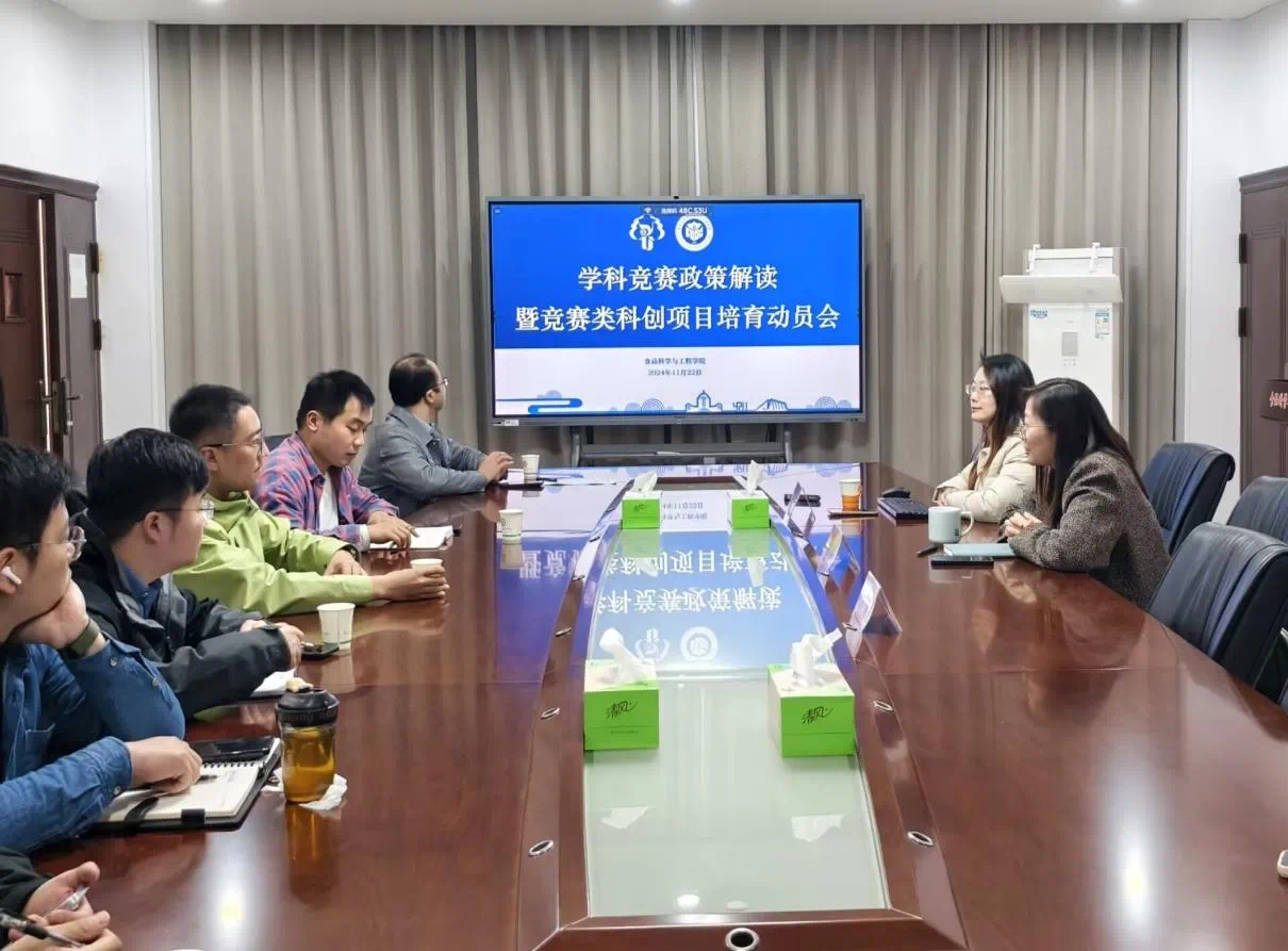 为深入学习贯彻党的二十大、二十届三中全会精神和校第四次党代会精神,进一步深化创新创业教育改革,促进大学生社会责任感、创新精神和实践能力的提高,高质量做好第十九届“挑战杯”全国大学生课外学术科技作品竞赛准备工作。近日,食品科学与工程学院举办第十三届“挑战杯”扬州大学大学生课外学术科技作品竞赛院内初赛。本次院赛邀请了校团委副书记徐香翠老师等多位专家,解读“挑战杯”系列竞赛政策,全体参赛老师和团队学生参加。