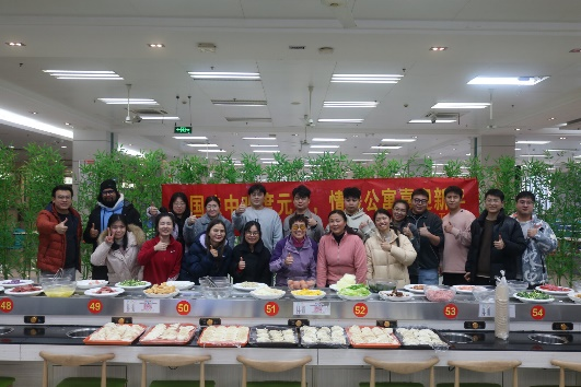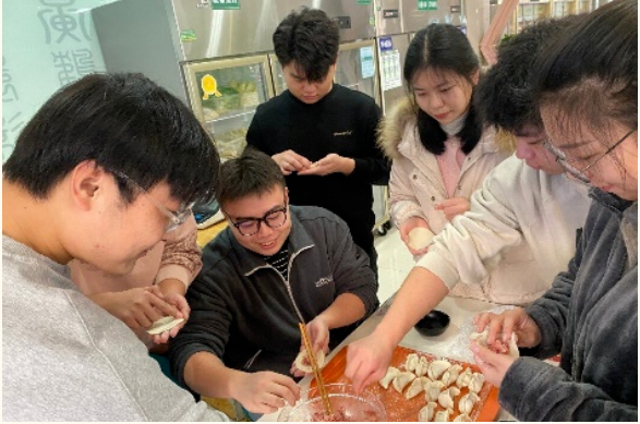 12月28日,乳品工程班在扬州大学东区食堂二楼开展以“中国味中欢度元旦,情暖公寓喜迎新年”为主题的班团活动。此次活动特别邀请到了扬子津东校区4号楼宿管沈金文阿姨和朱海燕阿姨,借由元旦来临之际,通过大家一起包饺子,提供一个欢乐、和谐的节日氛围,以增进学生与宿管阿姨的情感联系,也帮助加强同学们的归属感和幸福感。我院乳品工程班班主任马文龙老师以及辅导员陈斌老师也参与了此次活动。