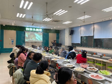 接着,大家围着小火锅,一边涮着热气腾腾的食材,一边聊着各自的学习和生活。