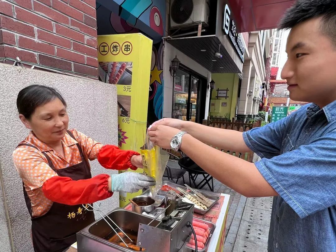 (7月4日,食品科学与工程学院“食”过“烃”迁实践团队在万达广场商圈开展油炸食品行情实地考察。余嘉怡供图)