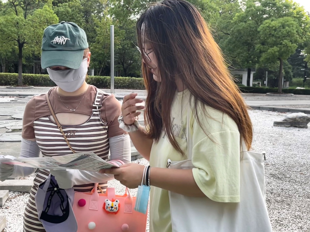 (图为7月8日,食品科学与工程学院“与菌相食、养治并举”防痛风党员实践团成员王子奕在南通市崇川区滨江公园进行科普宣讲图。王子奕供图)