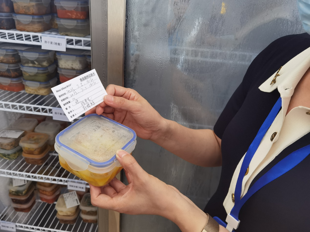 (7月9日团队负责人曹钰杰参观食品留样柜。曹钰杰供图)