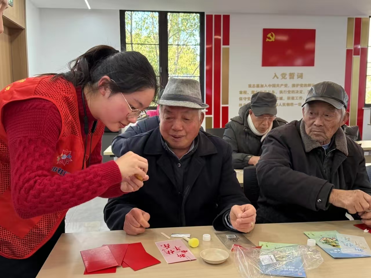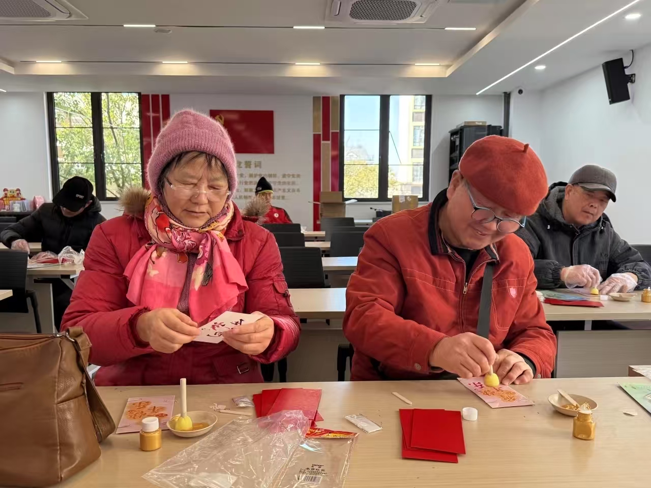 “本次红包制作我们采用一种类似于印章的方式,用象征财富的金色涂料,把财富和好运都压进红包里,希望他们在新的一年中巳巳如意,蛇来运转。”社区工作人员介绍。活动中,谢雨淇和银发朋友们一起动手,将精心设计的祝福语图案刻在印板上,再用金色涂料印制在红包上。每一个红包都承载着满满的新年祝福和美好的寓意。老人们脸上洋溢着笑容,纷纷表示要将这份心意带回家,送给自己的小辈们,希望他们在新的一年里能够学业有成、事业顺利、健康平安。