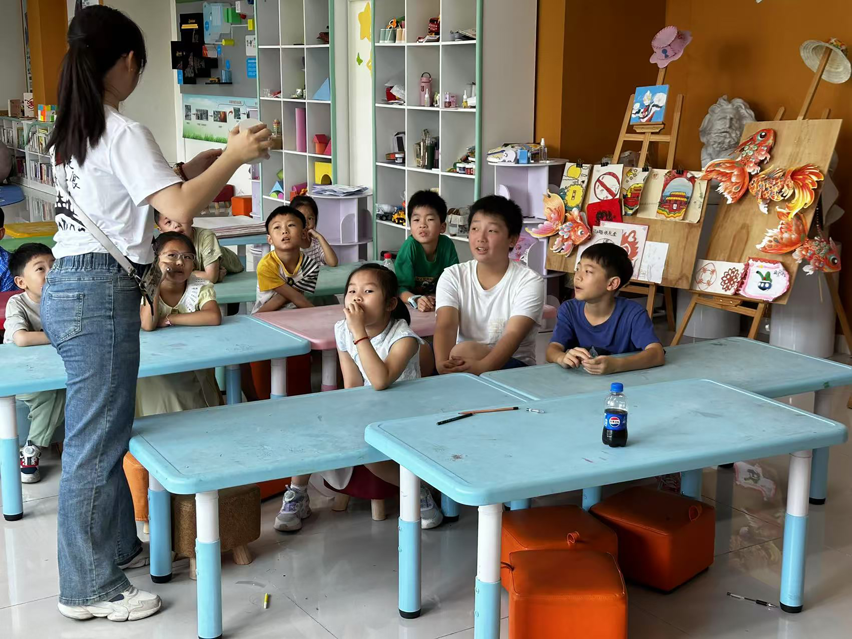 到了实践地点,在小朋友们期待的眼神中,有关牙齿的饮食科普小课堂正式开课。首先,团队成员肖子毅向小朋友们展示了一个趣味实验——可乐与鹌鹑蛋,并让每一位儿童去触摸感受鹌鹑蛋表面被腐蚀的情况,从而切身体会到保护牙齿的刻不容缓,也点燃了全场的互动氛围。