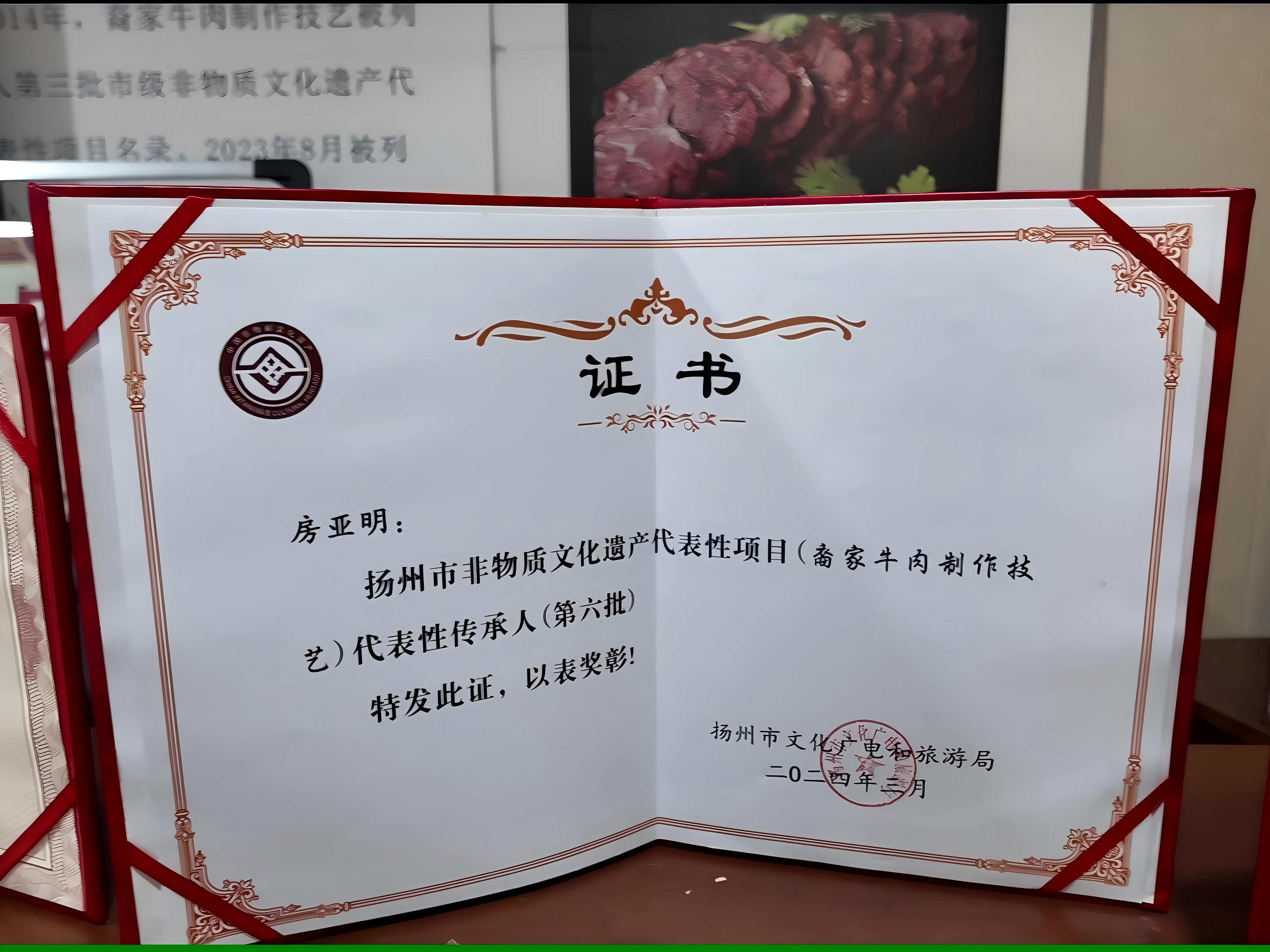 裔家牛肉制作技艺是在扬州市邗江区方巷镇裔家村世代传承的牛肉制作技艺,凭借其独特的卤汁配方,在2014年入选扬州市非遗名录,2023年荣升省级非遗项目。7月7日上午,“食寻非遗”实践团来到了裔家牛肉亚明食品厂,对裔家牛肉裔家牛肉制作技艺代表性传承人房亚明进行了专访,探寻这款非遗牛肉背后的传承密码与发展脉络。