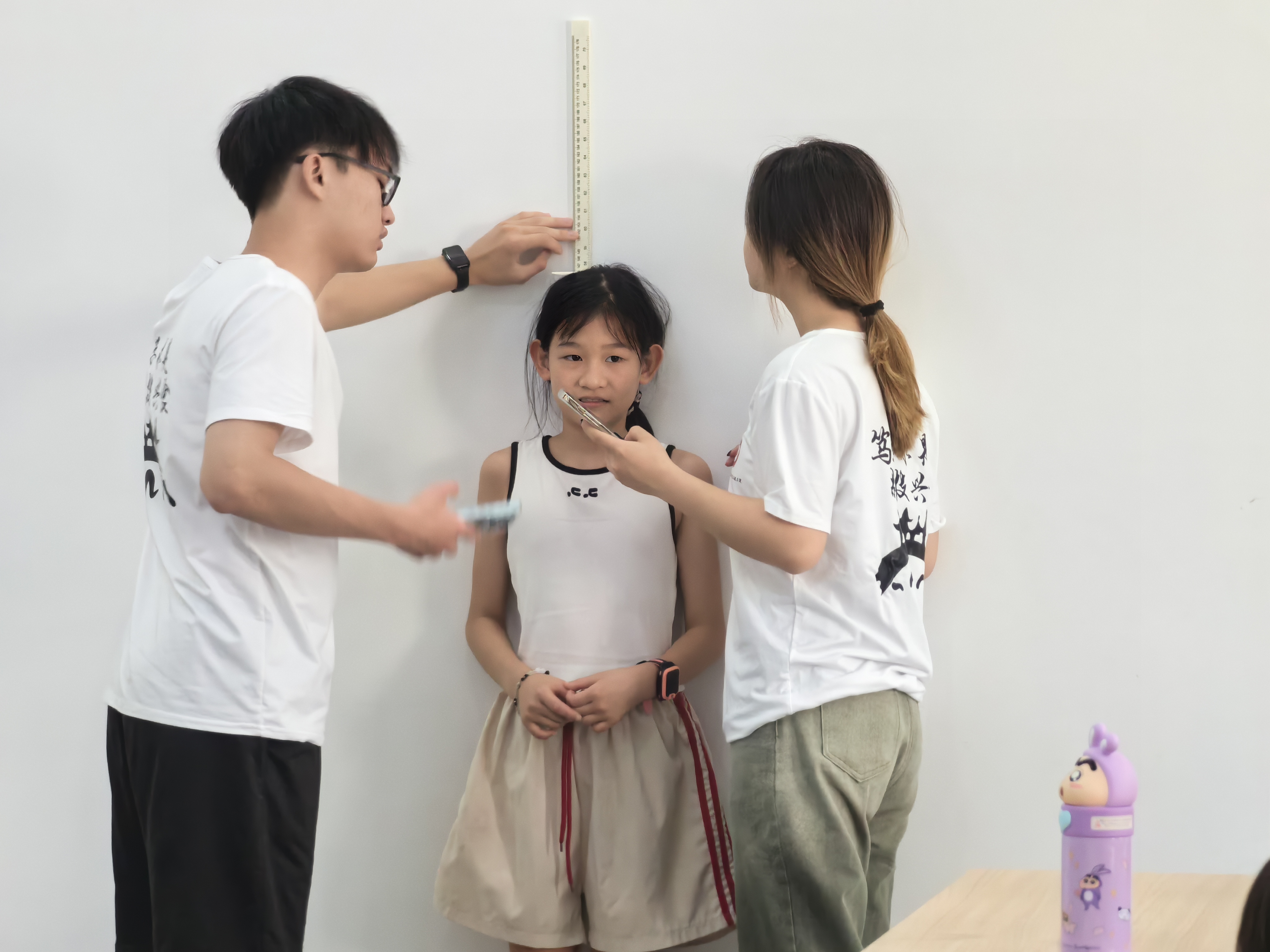 为了直观记录下孩子们在饮食助力下的每一次长高瞬间,团队成员专门采购的身高测量尺派上了大用场。孩子们排着队,一个个兴奋地想要测量,想要通过刻度看到自己一点一滴的成长变化。