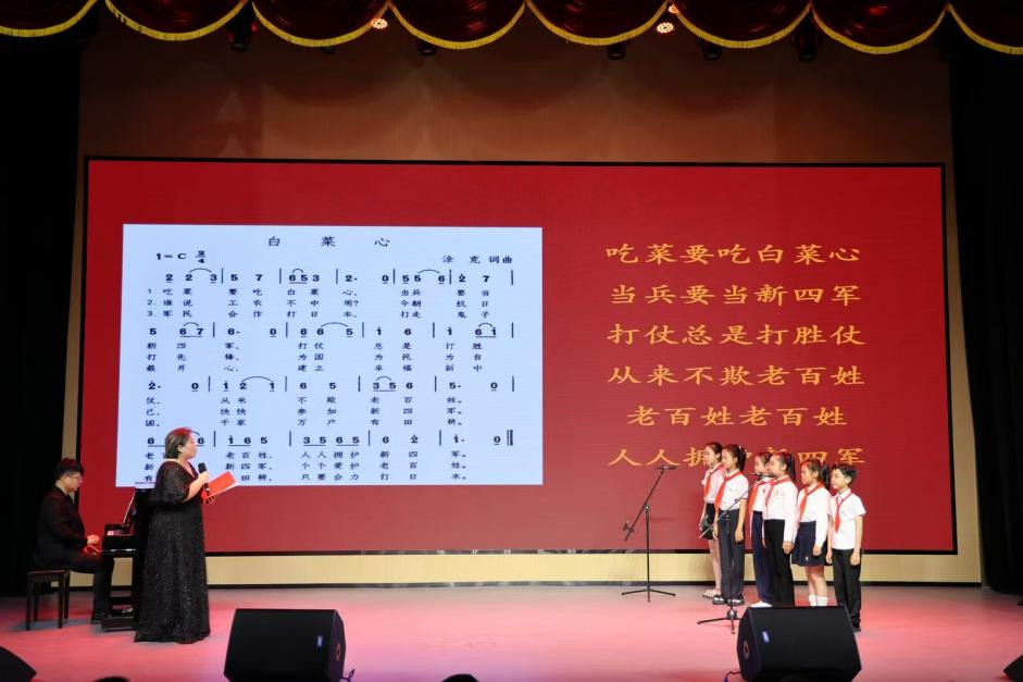演出开始后,激昂的旋律与深情的朗诵在馆内回荡,重现着烽火岁月。志愿者退至场边,一边留意着现场状况,一边也沉浸在这场以抗战精神为主题的视听叙事中。