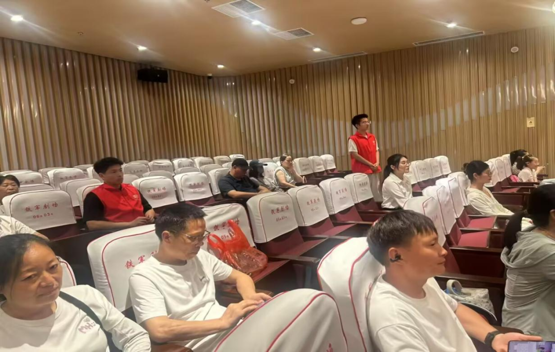默哀的余韵未消,纪念馆内的汇报演出即将开场。两名志愿者迅速转换角色,投入到演出的保障工作中。他们熟练地分发着印制好的节目单,为络绎不绝的观众指引着座位区域,耐心解答着关于演出内容和场馆设施的询问。
