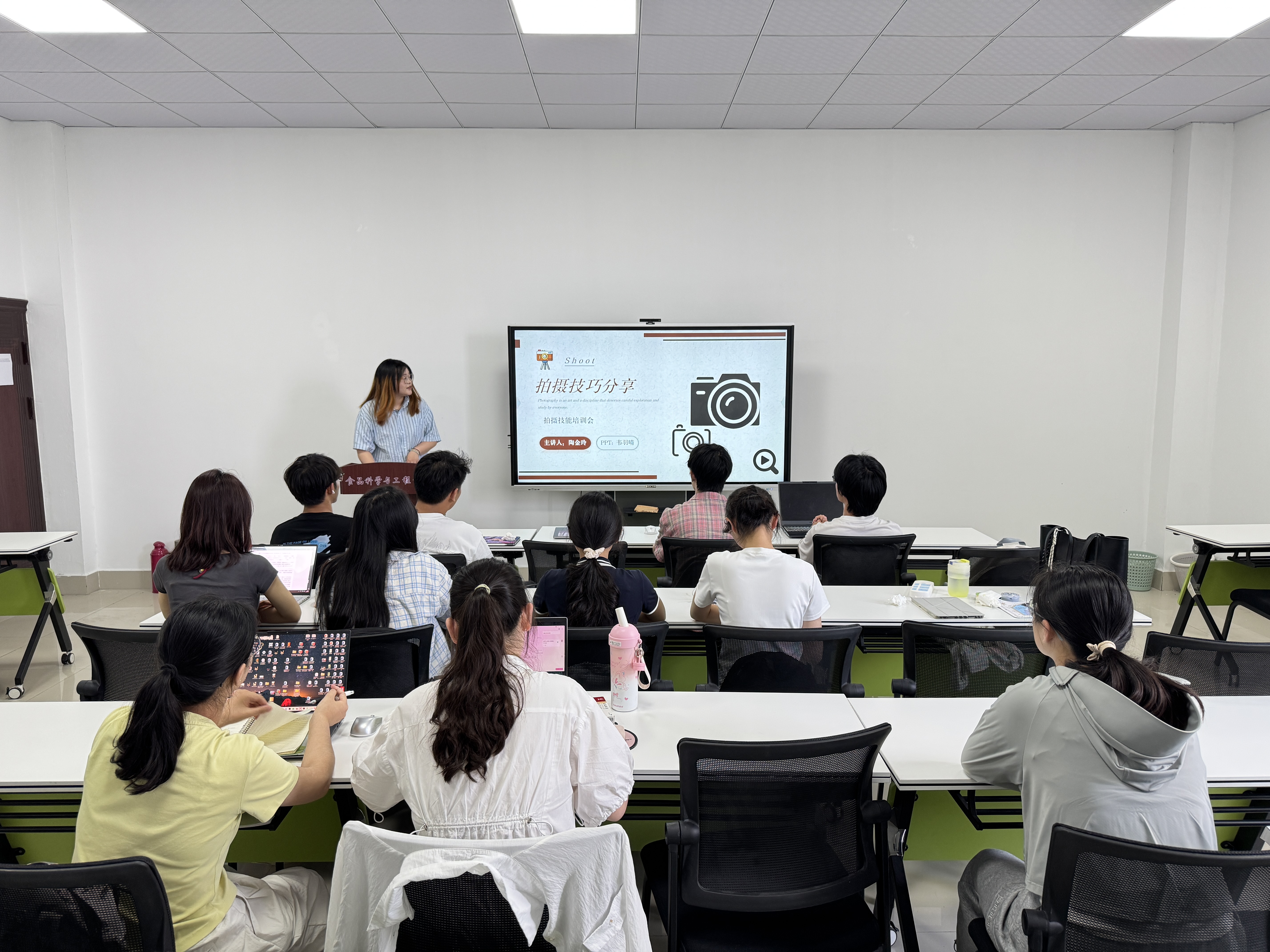 团队成员陶金玲为实践团队开展拍摄与摄影技能专项培训,系统讲解了素材拍摄规范与剪辑技巧。陶金玲从点构图和线构图两大类构图技巧切入,详细讲述了中心点、三分点、对称线、三分线、对角线、引导线的具体案例,提醒团队成员构图时善用辅助线。在人像摄像方面,陶金玲指出要灵活运用远景、全景、中景、近景、中近景等方法,运镜掌握“推、拉、摇、移”四法,牢记“空镜宁慢勿抖”,并严控人物采访标准。此外,陶金玲同步推荐系列后期剪辑软件,为非遗影像的精准呈现赋能支撑。