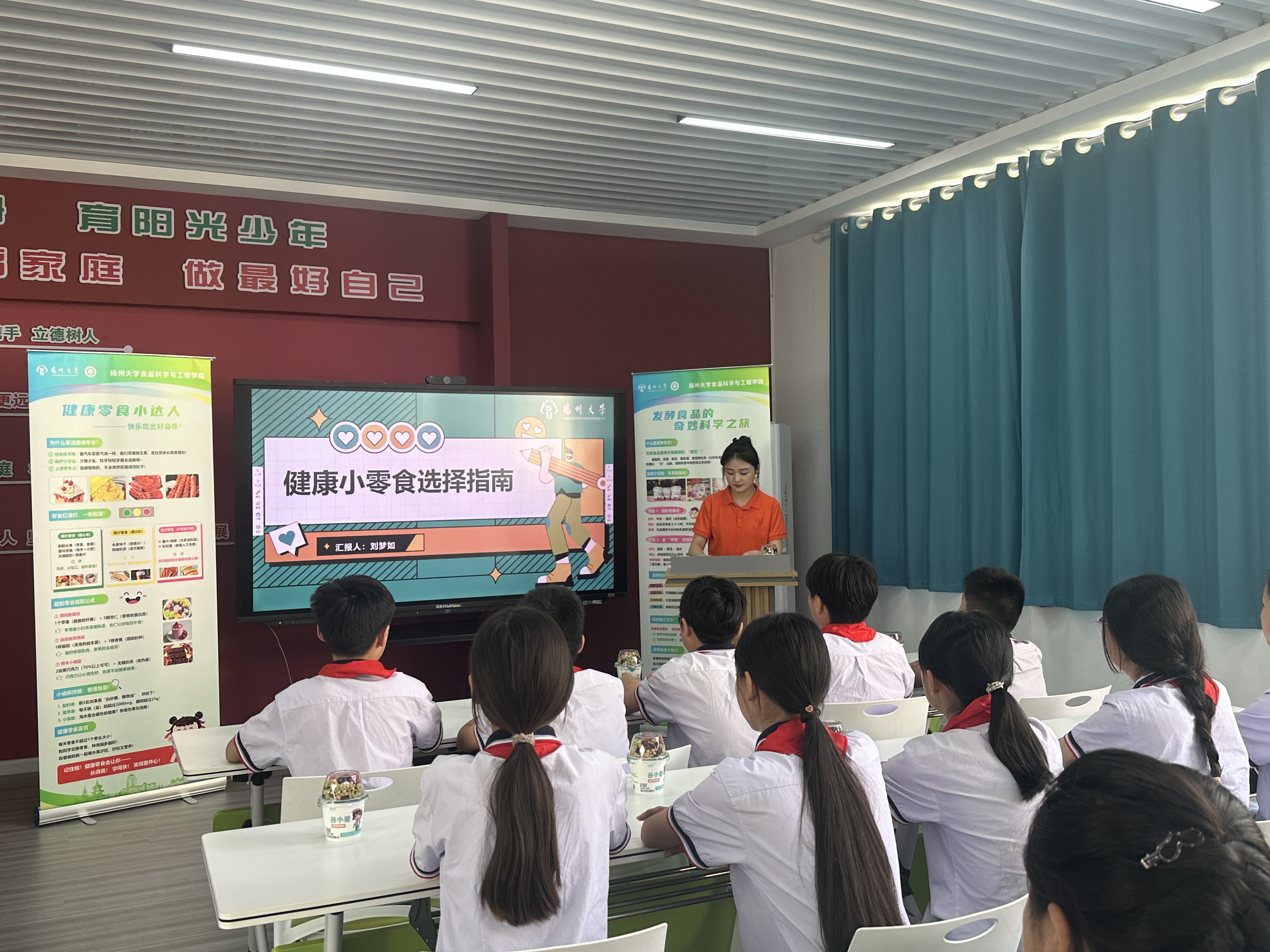 近日,“食”力兴农科技助农服务团走进江苏省宿迁市泗洪县经济开发区小学,开展了一场主题为《健康小零食选择指南》的科普宣讲活动,为孩子们揭开健康零食的神秘面纱,助力他们吃得健康、长得茁壮。