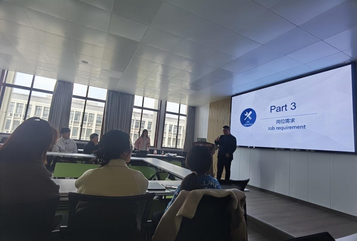 之后,宣讲人员给出了本次宣讲的招聘岗位要求、人数要求、培训计划以及福利待遇,鼓励同学们加强专业知识的学习,以更好适应未来发展市场需求。互动环节中为同学们进行了答疑解惑,以便于更加了解企业和自己的就业规划。