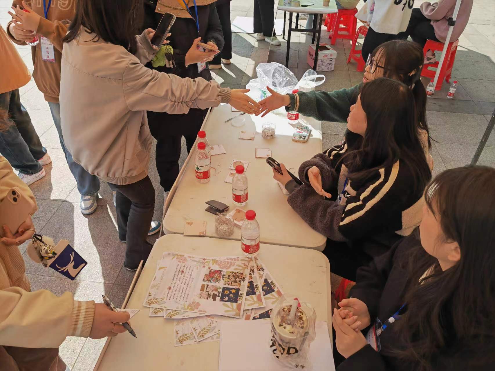 活动期间,同学们在心愿墙上晒出自己的微心愿,写下自己上一年的困惑和对现在自己的鼓励。这项“心灵相贴”活动鼓励同学们丢掉焦虑,向阳而生,将自己内心深处的声音勇敢的表达出来。在现场还有玩偶“暖心拥抱”的互动项目,可爱的玩偶给予每一位想要温暖的同学一个大大的拥抱。同时,学院老师们也积极参与其中,与玩偶进行互动,将现场热烈的气氛调动起来。