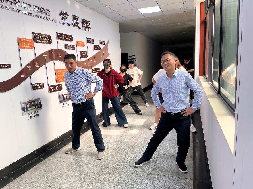 为了广大师生以更饱满的精神、更健康的体魄投入到学习与工作中,2025年5月,食品科学与工程学院研究生会和教职工工会联合举办“师生同频·活力飞扬”工间操活动。每个工作日的下午3点,师生们准时走出办公室,来到走廊,一起做工间操,活动筋骨,为更好地科研工作奠定基础。