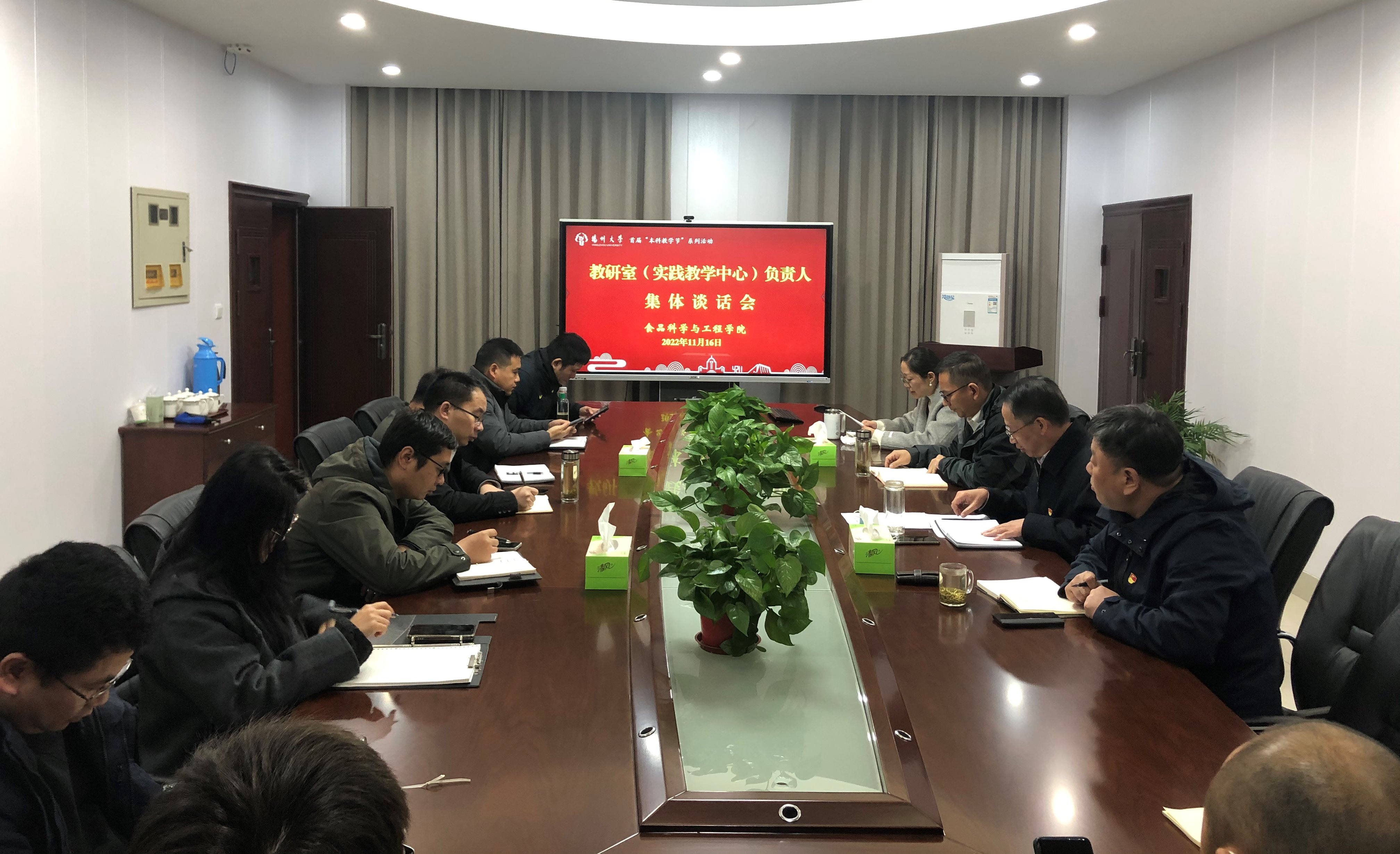 11月16日下午,学院在笃行楼SM401会议室召开教研室(实践教学中心)新聘负责人集体谈话会。院党委书记戴世勇主持会议并讲话,院长杨振泉、党委副书记杨晶、副院长黄玉军出席会议。