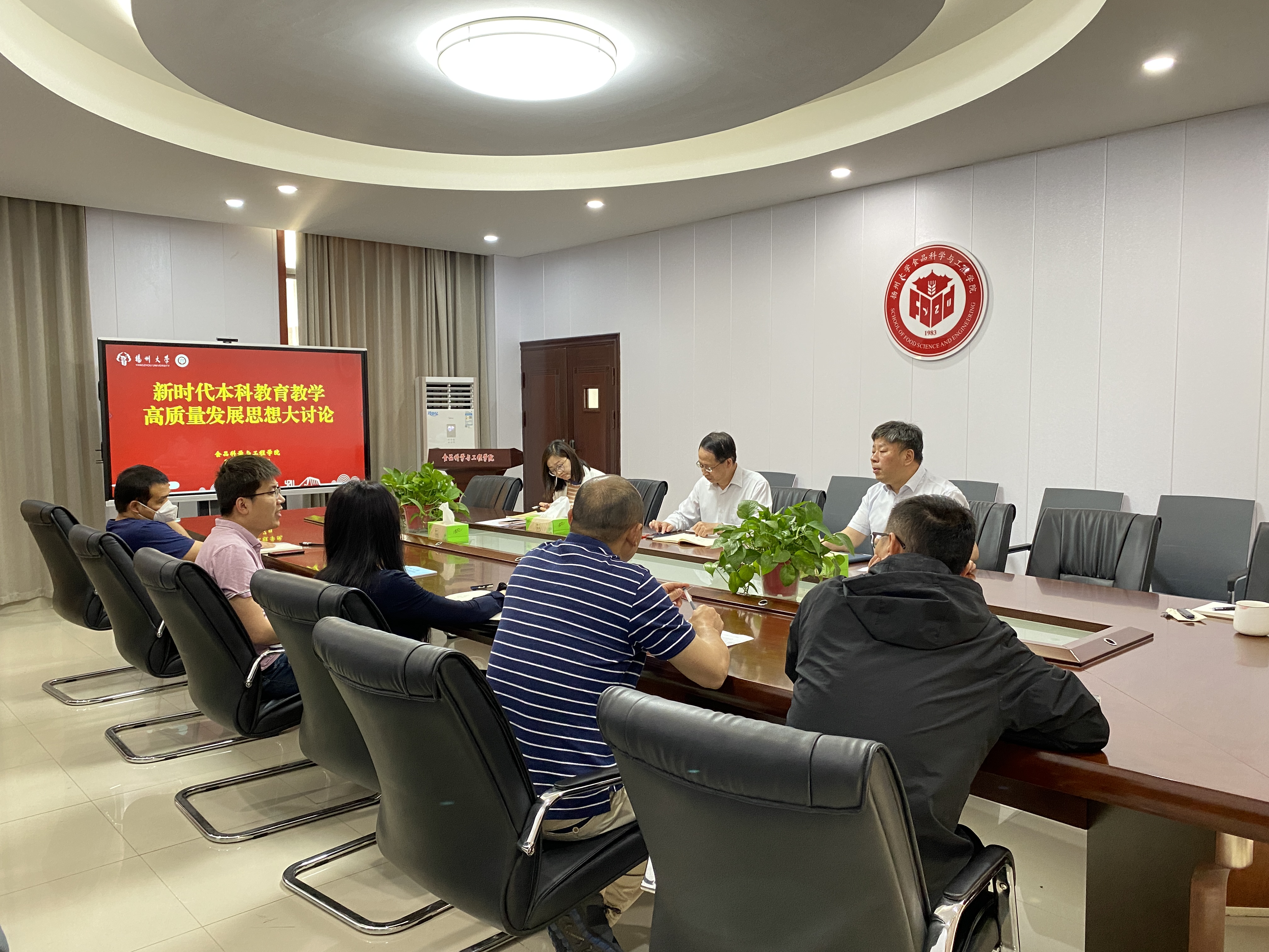 为深入学习贯彻习近平新时代中国特色社会主义思想,全面落实党的二十大精神,牢牢把握主题教育“学思想、强党性、重实践、建新功”的总要求,按照学校相关通知精神,学院于6月7日上午在笃行楼四楼会议室,围绕“全面提高人才自主培养质量”的主题开展了新时代本科教育教育高质量发展思想大讨论活动。全体院领导、各教研室主任参加研讨,活动由黄玉军副院长主持。