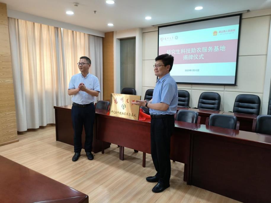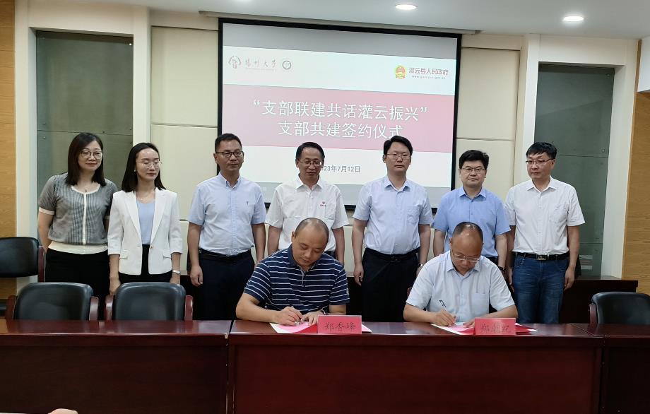 活动中,杨振泉院长与陈新洪副县长共同为“扬州大学研究生科技助农服务基地”揭牌,教工第二党支部与灌云县科技局机关党支部签署党建共建合作协议。戴世勇书记在致辞中介绍了学院党建工作开展的基本情况,他表示,未来将通过学院教工支部与县科技局支部的党建共建,开展更加深入的合作交流,持续巩固校地友谊,让双方的共建活动结出丰硕成果。