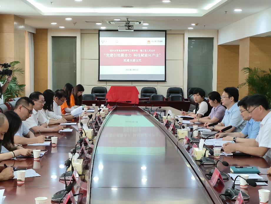 7月12日,我院“食”在有方师生科技助农服务团一行十多人,来到连云港灌云县开展“党建引领聚合力、科技赋能兴产业”主题教育实践活动。灌云县委副书记、省委驻灌乡村振兴帮促工作队队长葛自强,副县长陈新洪,学院党委书记戴世勇、院长杨振泉、党委副书记杨晶以及灌云县科技局和灌云县有关企业家代表参加活动。