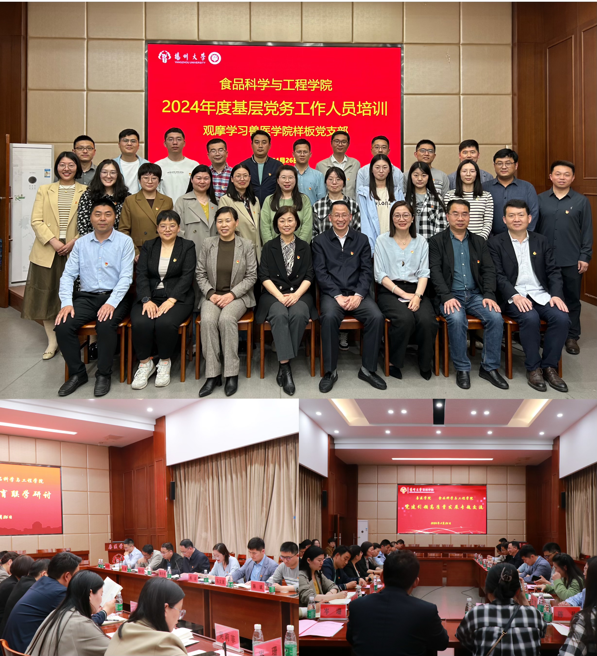 4月26日下午,学院与兽医学院在文汇路校区29号楼二楼报告厅开展基层党建工作观摩学习暨党纪学习教育联学研讨活动。活动由兽医学院党委书记蔡丽娅主持,兽医学院和食品科学与工程学院党委理论学习中心组党纪学习教育专题读书班共35人参加。
