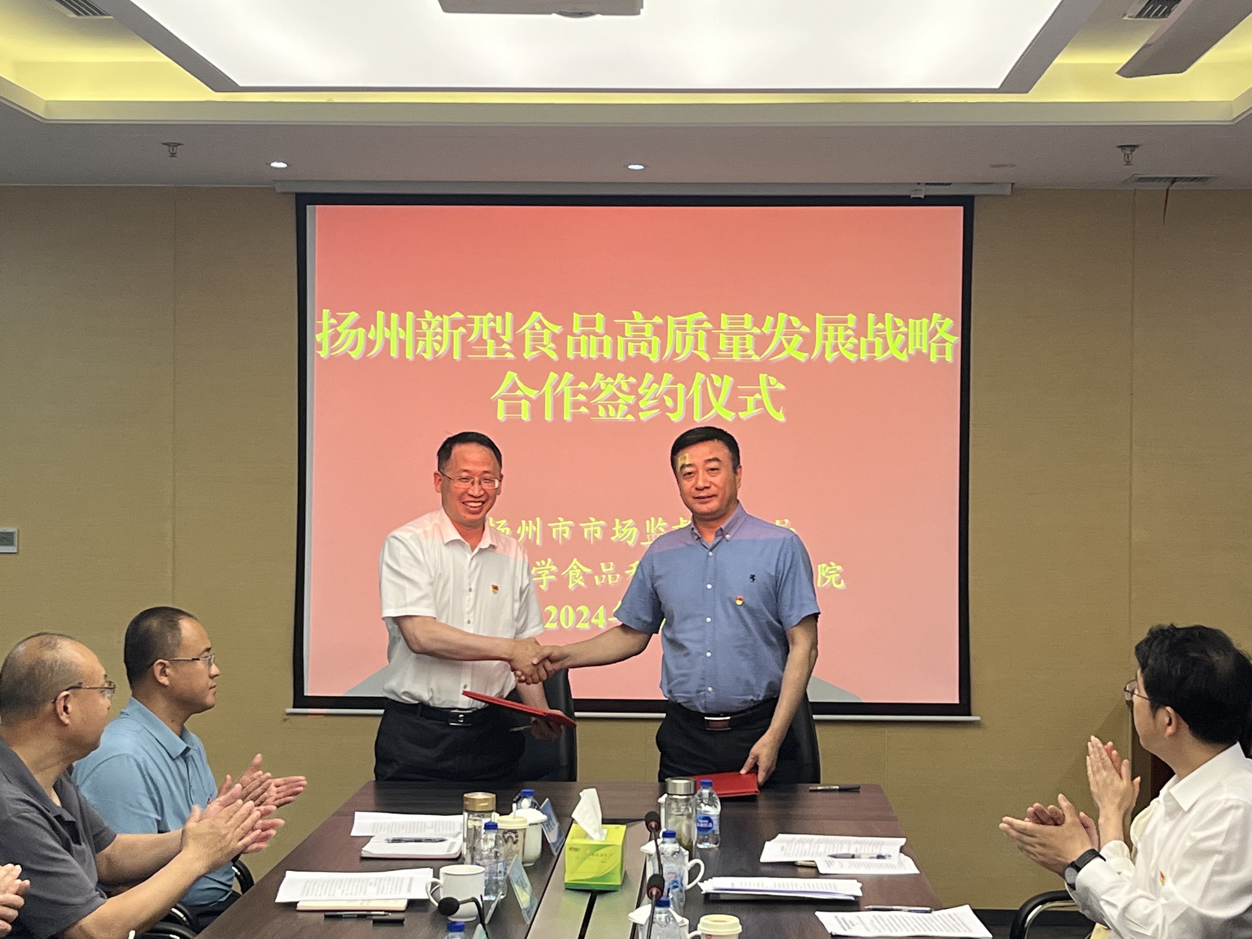 会上宣读了市委组织部关于同意扬州市新型食品产业链综合党委组成人员名单的复函,解读了《扬州市新型食品产业链综合党委章程》,并表决通过。会上举行了扬州新型食品高质量发展战略合作协议签约仪式,全面深化扬州市新型食品产业链综合党委和扬州大学食品科学与工程学院在平台共建、人才培养、学术交流和生产实习、技术攻关研究、标准制定等更多领域的合作,推动新型食品产业科技创新和迭代升级。