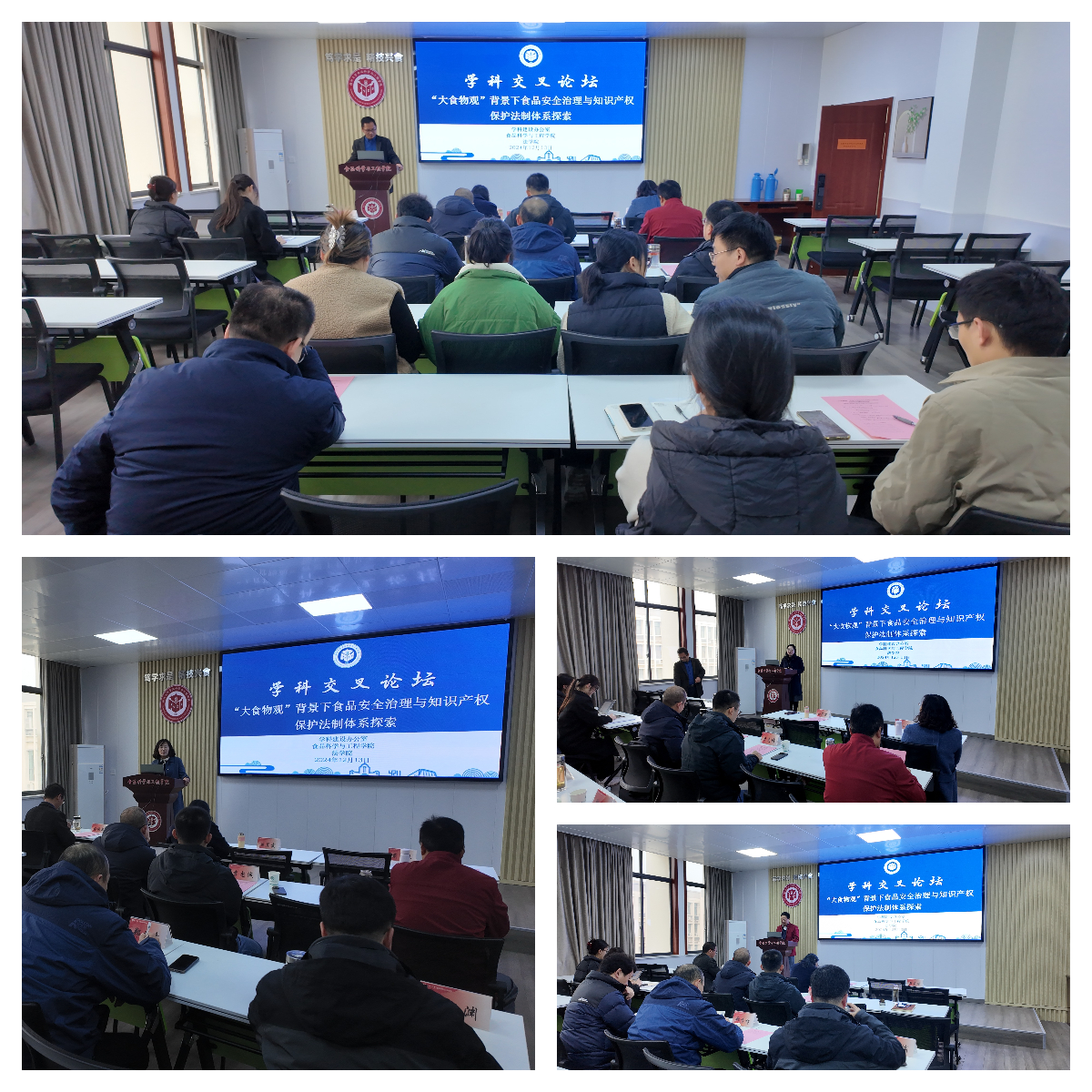 为推动学科交叉融合,探讨“工”“法”学科交叉新方向,构建促进跨学科交流与合作平台,12月13日下午,在校学科建设办公室的指导下,食品学院与法学院在扬子津校区笃行楼本优学术报告厅联合举办以“‘大食物观’背景下食品安全治理与知识产权保护法制体系探索”为主题的学科交叉论坛。校学科建设办公室主任戴玉琴、法学院副院长(主持工作)曲昇霞、食品学院院长杨振泉,法学院、食品学院的相关教师、博士后和博士研究生共30余人参加此次论坛。