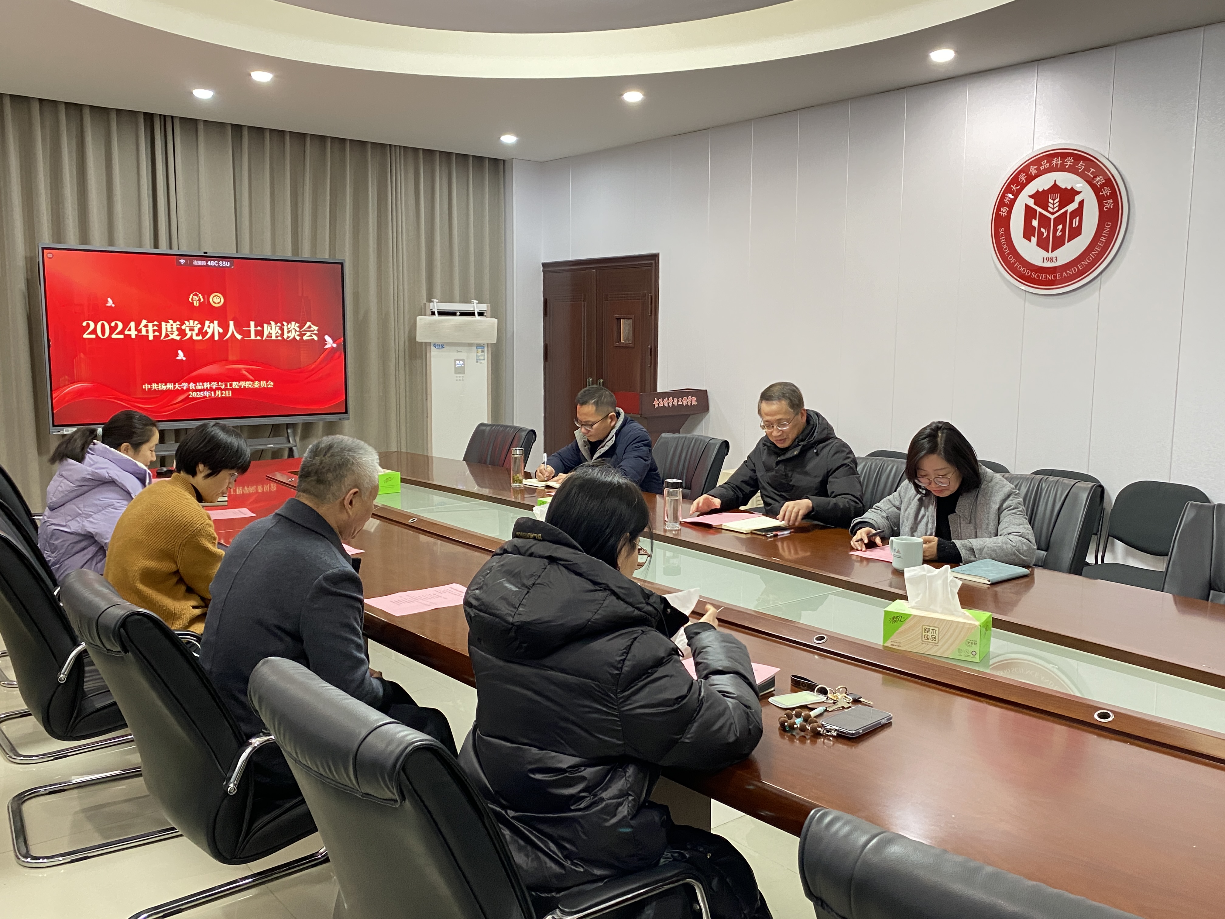 为深入学习贯彻习近平总书记关于做好新时代党的统一战线工作的重要思想,发挥学院党外人士重要作用,广泛听取党外人士的意见建议,进一步凝聚人心、汇聚力量,全面推进学院各项事业高质量发展。1月2日,食品学院在笃行楼四楼会议室召开党外人士座谈会。学院各民主党派和无党派教师代表参加会议。院党委书记戴世勇主持会议,院长杨振泉、党委副书记杨晶出席座谈会。