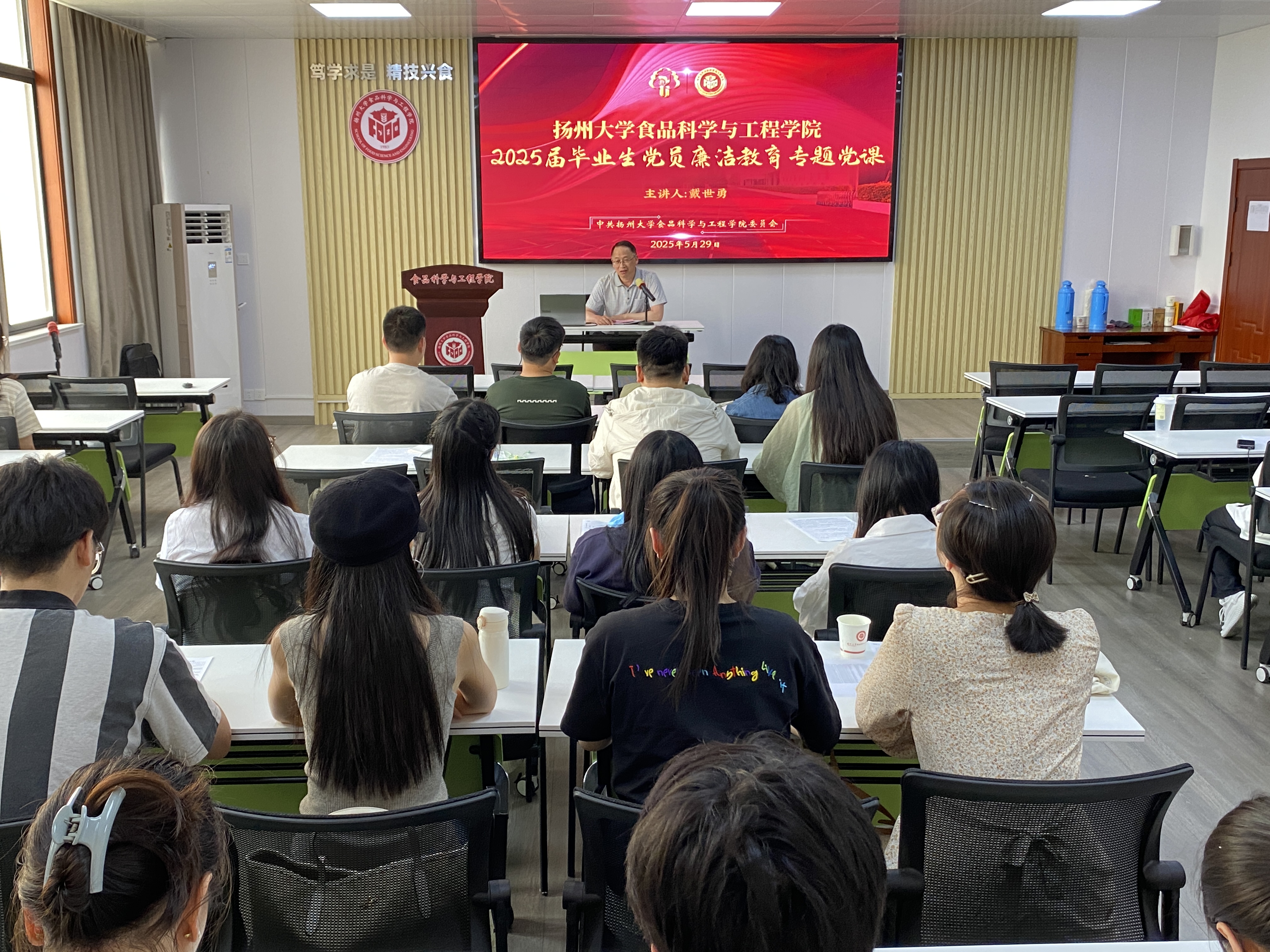 为进一步落实立德树人根本任务,教育毕业生党员加强党性修养,树立崇廉敬廉人生观,涵养廉洁品格,5月29日下午,学院在本优报告厅S426开展2025届毕业生党员廉洁教育专题党课,分别邀请盐阜路离退休党总支第二党支部书记蒋建刚和学院党委书记戴世勇授课。