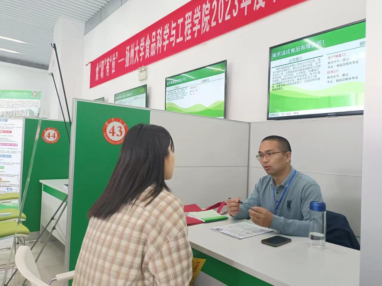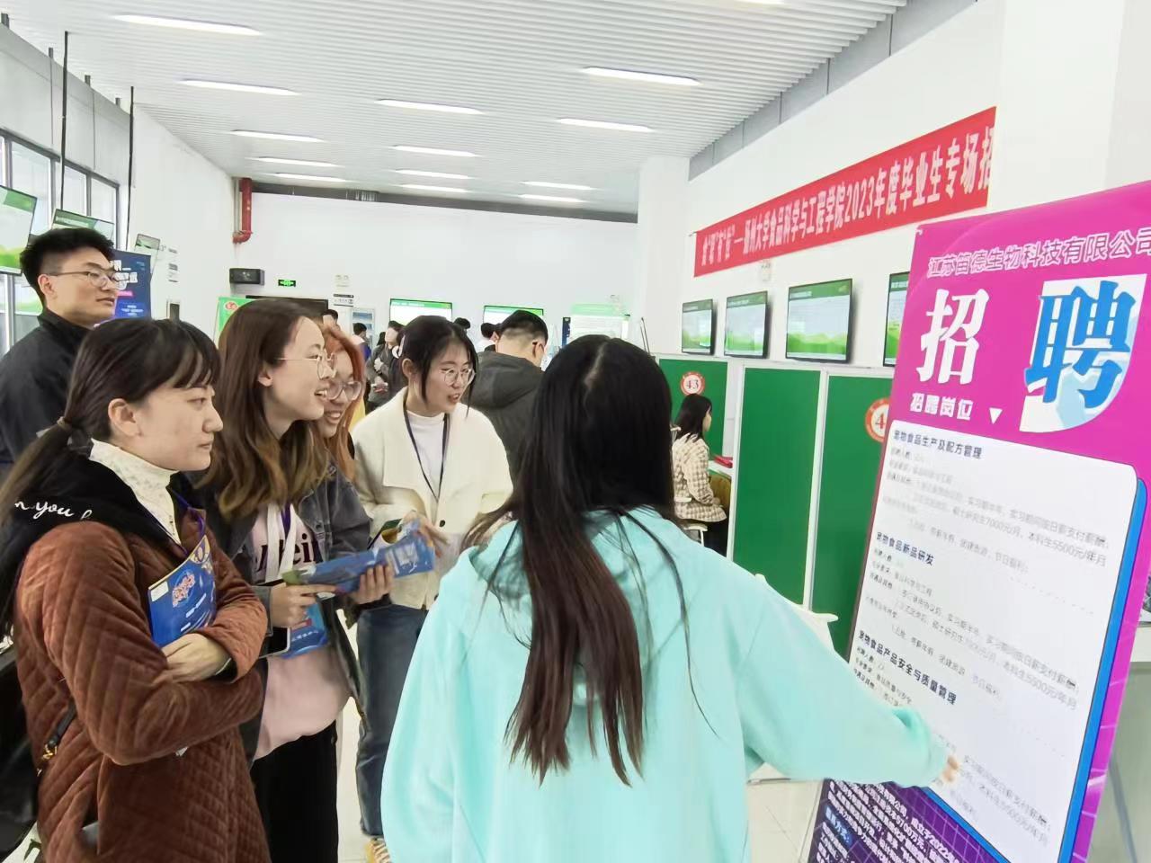记者了解到,在本次招聘会上,作为主办方,扬州大学食品科学与工程学院通过问卷调查、个别交流等方式,向企业介绍食品学科发展情况和最新研究成果,了解并收集企业人才培训、继续教育、产品研发和技术攻关等合作意向,建立良好的校企合作关系。“本次招聘会是一次难得的盛会,77家食品领域的企业相聚在一起,共同为我们的学生提供了大量的就业机会,不仅是企业与学生的‘双向奔赴’,也是我们学院与企业的‘双向奔赴’。”扬州大学食品科学与工程学院党委书记戴世勇说。