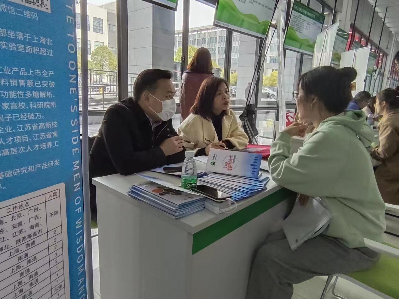 “我们这次来,可以说是收获满满!”上海昊岳生物科技有限公司的钟经理笑着告诉记者,“我们公司内约40%的员工是扬大毕业生,特别是我们的老板就是扬大食品学院的毕业生。公司刚刚与学院签订了合作协议,不仅招到了满意的人才,也得到学院在员工培训和产品研发技术等方面的支持。本次招聘会,我们提供了8个岗位,且待遇优厚,希望有更多的年轻校友加盟我们!”
