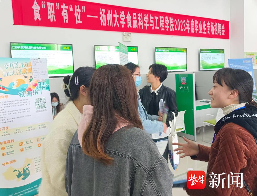 记者了解到,本次招聘会上,作为主办方,扬州大学食品科学与工程学院通过问卷调查、个别交流等方式,向企业介绍食品学科发展情况和最新研究成果,了解收集企业人才培训、继续教育、产品研发和技术攻关等合作意向,建立良好的校企合作关系。“本次招聘会也是一次难得的盛会,77家食品领域的企业聚在一起,为我们的学生提供了大量的就业机会。我觉得不仅是企业与学生的‘双向奔赴’,也是我们学院与企业的‘双向奔赴’。”扬州大学食品科学与工程学院党委书记戴世勇说。