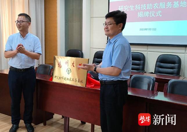 活动中,扬大与灌云县共同举办了“扬州大学研究生科技助农服务基地”揭牌仪式、党建共建合作协议签署仪式。“未来我们将通过学院教工支部与县科技局支部的党建共建,开展丰富的合作活动,持续巩固校地友谊,让共建活动结出丰硕成果。”扬州大学食品科学与工程学院党委书记戴世勇表示。