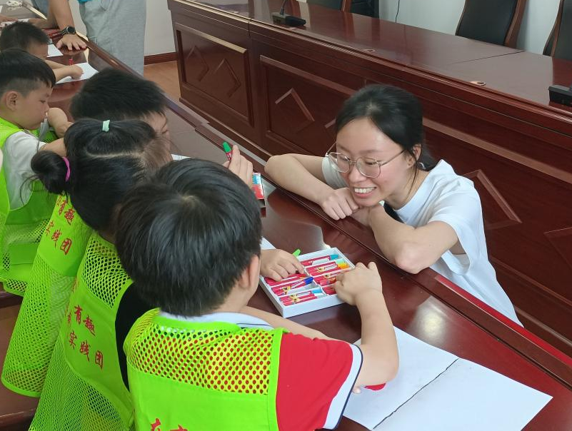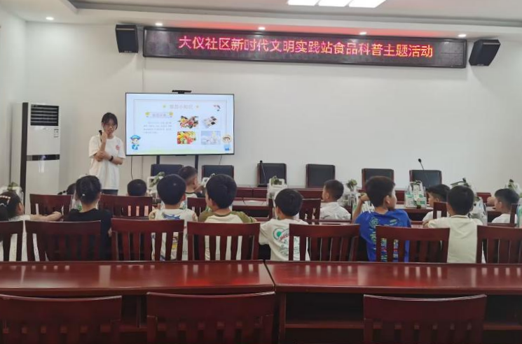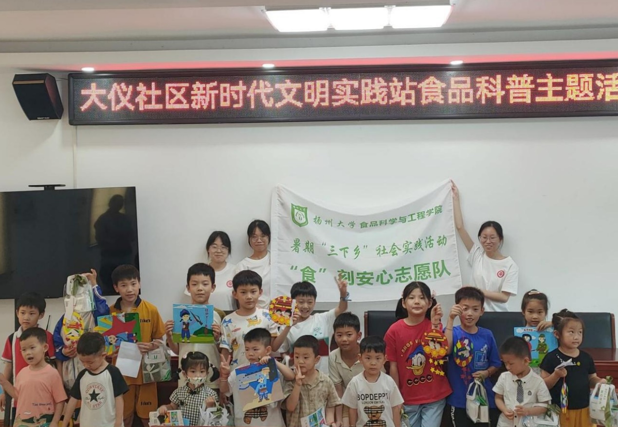 交汇点讯 “我喜欢吃胡萝卜!”“我爱吃苹果!”“我爱吃玉米!”……7月19日,在仪征市大仪镇社区,一群小朋友们争先恐后地回答自己最爱吃的食物。原来,这是扬州大学“‘食’刻安心”志愿服务团队正在这里举办的一场食品健康科普活动。当天,为加强食品安全教育,增强健康饮食意识,该团队利用自己所学专业,来到大仪镇开展食品安全科普宣传活动。