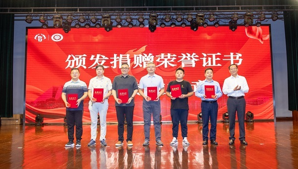 大会还举行了"校企学术交流中心"揭牌以及为校友颁发捐赠荣誉证书和校友徽章仪式。