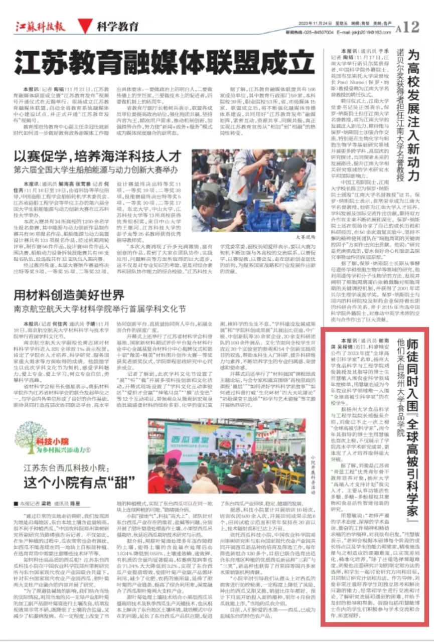 据扬州大学食品科学与工程学院院长杨振泉介绍,刘俊已不止一次上榜“全球高被引科学家”,而今年其指导的博士生用慧敏也首次上榜,不仅展示了学院高水平学术研究成果,更体现了人才培养取得重大突破。