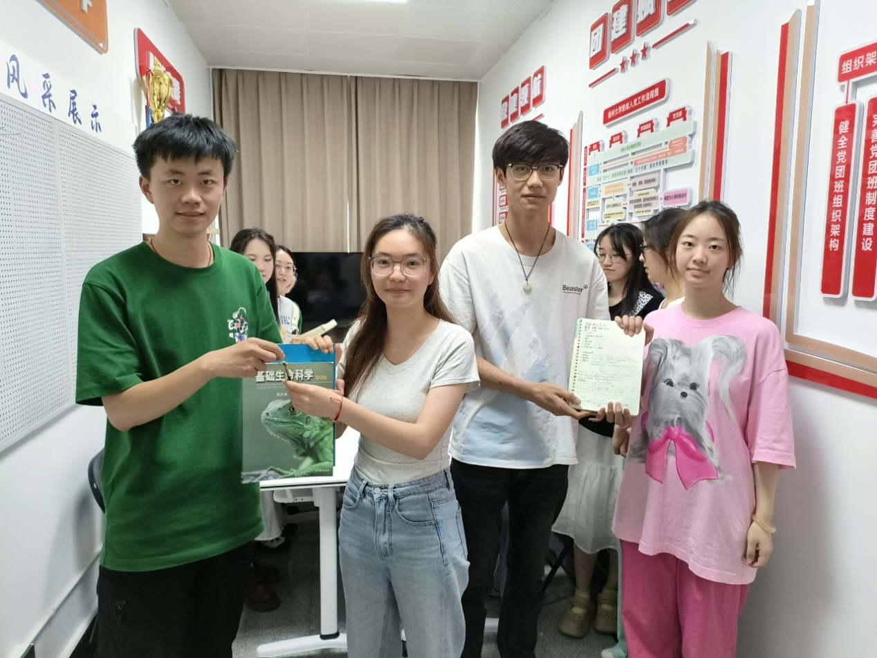 交汇点讯 “学长,你是怎么成功保研的啊?可以在毕业前把学习资料分享给我们吗?我们想努力跟你一样优秀。”6月20日,在扬州大学扬子津校区文津楼的一间教室里,食品学院的大四毕业生张健同学正在为即将迎来期末考试的学弟学妹们进行辅导。听了他们的话,张健立刻想起了自己堆在宿舍的学习资料,有了一个特别的想法—给学院留下一份特殊的礼物。结束辅导后,他立即回到宿舍与自己的舍友赵德宇进行沟通,两人一拍即合联系了其他五位同学,将他们的学习笔记、经验分享视频、资料U盘等收集起来,将这些资料作为特殊的礼物送给有需要的学弟学妹们。