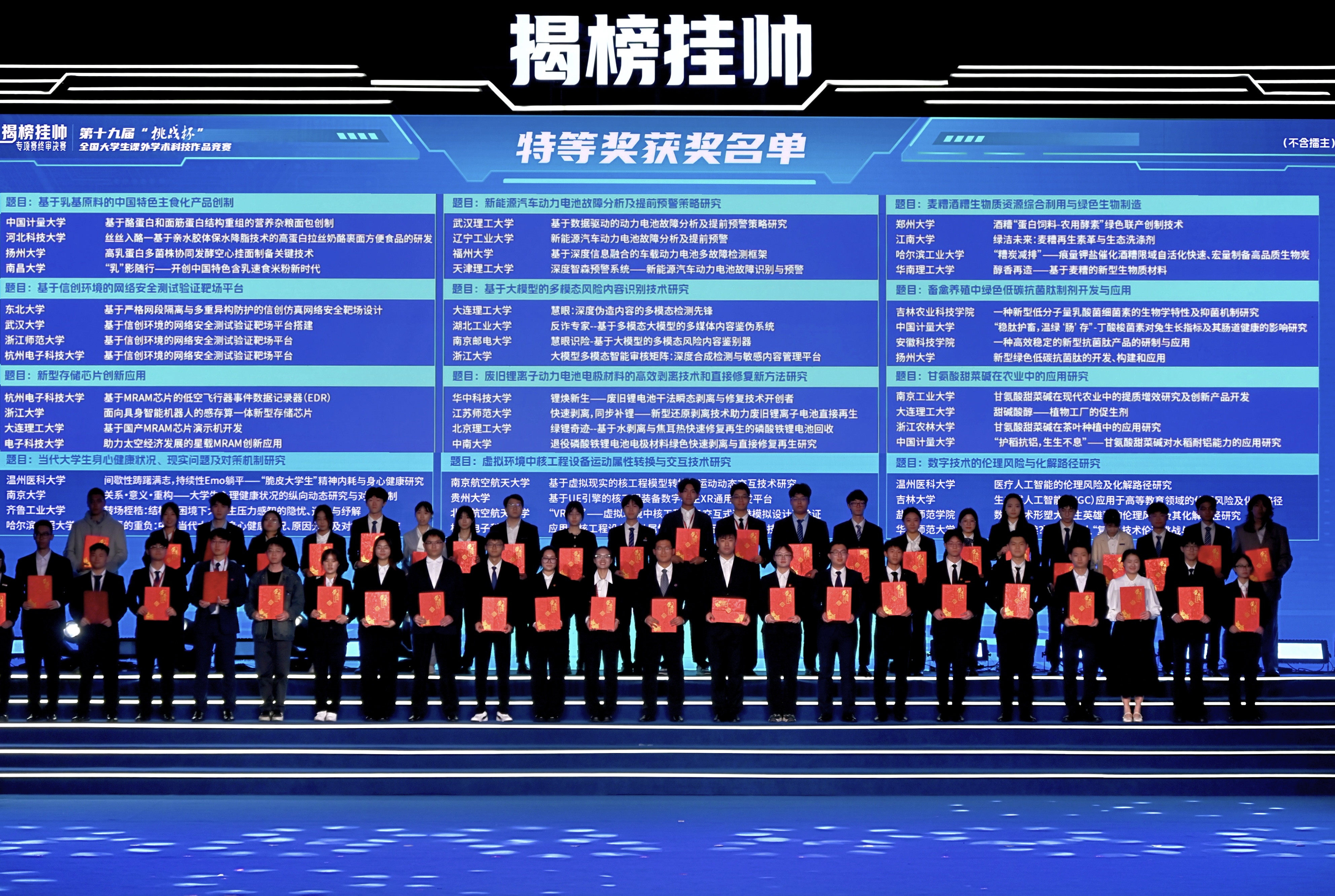 据了解,2024年度“挑战杯”“揭榜挂帅”专项赛设置高校学生赛道和青年科技人才赛道,共吸引2.7万余人参加,共有6500余件参赛作品,最终来自全国410余所高校和企业的1950余件作品入围终审决赛,终审决出各选题“擂主”、特等奖等奖次最终获奖团队。